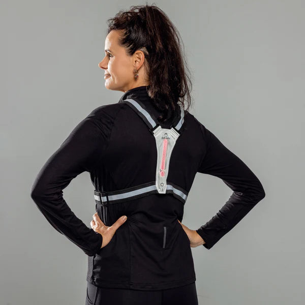 Løbetur i mørket? Cykeltur ved skumringen? Denne led‑harness sørger for, at du både bliver set – og får plads til mobilen.